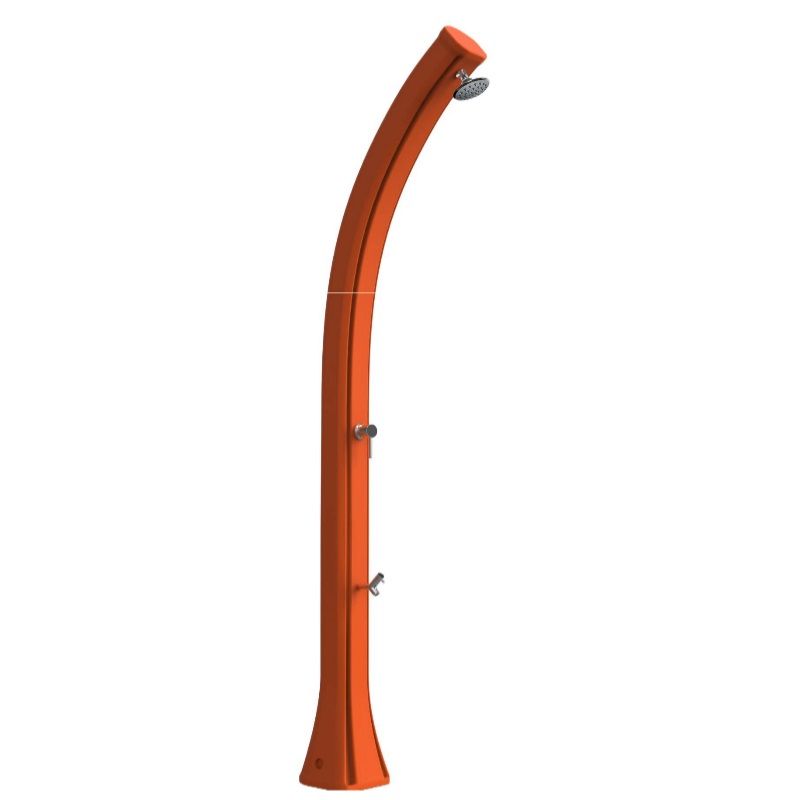Doccia a riscaldamento solare da esterno dal design innovativo e originale, HAPPY con miscelatore caldo / freddo e rubinetto lavapiedi.