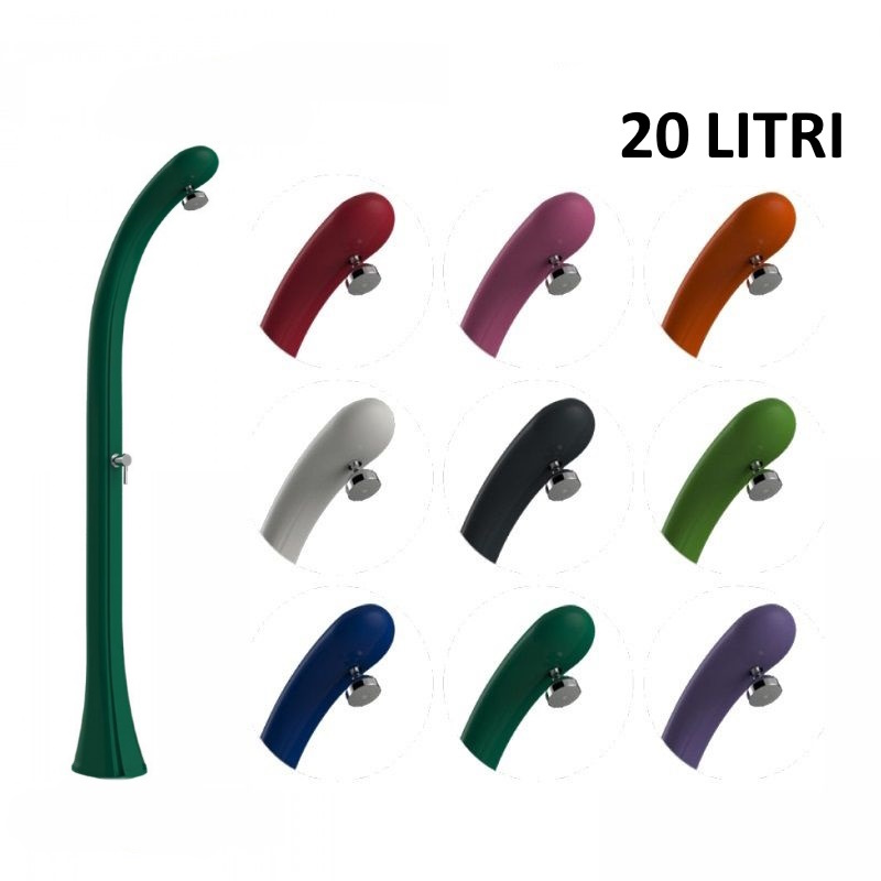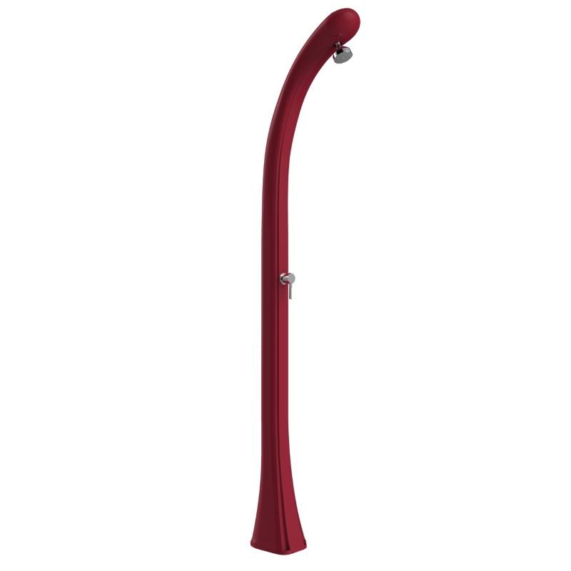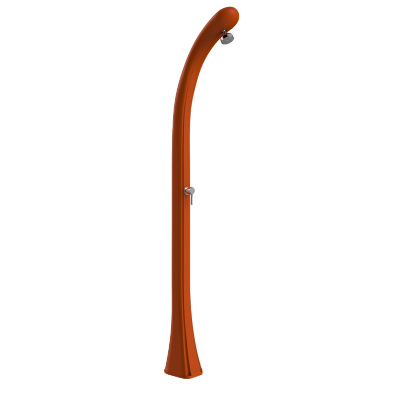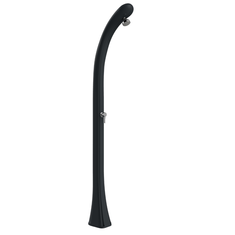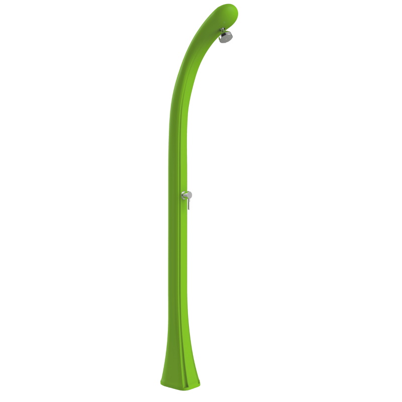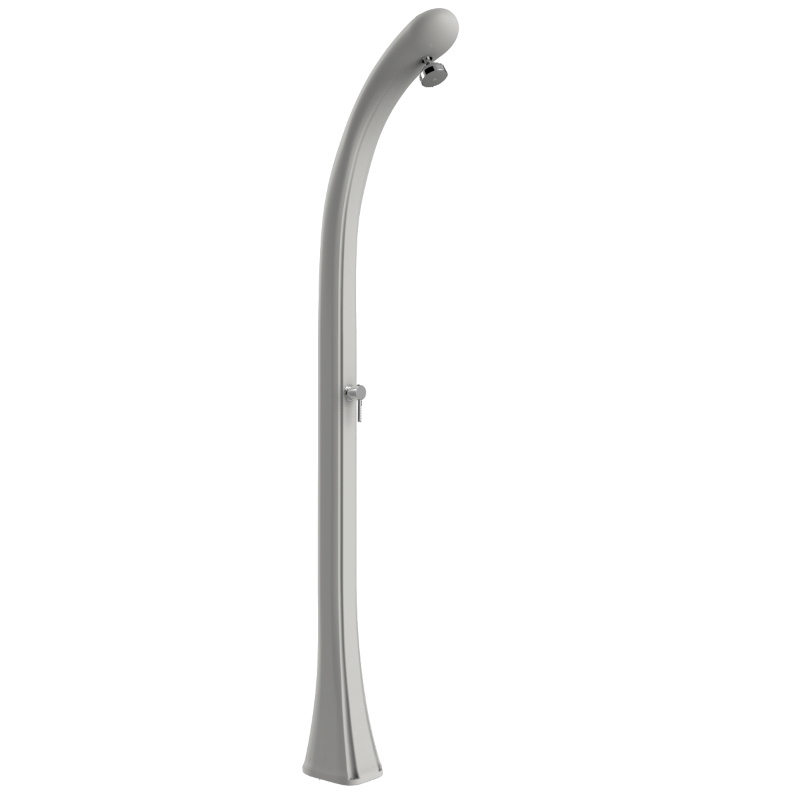 Doccia a riscaldamento solare da esterno, perfetta per un utilizzo pubblico (strutture pubbliche, balneari) o privato (giardini, piscine), grazie ai sistemi di fissaggio da giardino e sabbia di cui è dotata; dispone inoltre di miscelatore per l’acqua calda e fredda (in particolare il circuito dell’acqua fredda è collegato direttamente all’impianto idrico, mentre il circuito dell’acqua calda è collegato al serbatoio interno della doccia), di un soffione con ampio getto d’acqua e con posizione regolabile, di un tappo di scarico integrato, di una base con attacco ad innesto laterale e valvola di sovrappressione. Questa doccia, caratteristica per il suo design minimalista, è realizzata in polietilene con trattamento anti-corrosione e grazie al serbatoio interno di 20 litri, dove l’acqua viene riscaldata direttamente dal sole, funziona utilizzando esclusivamente fonti di energia rinnovabili, come appunto l’energia derivata dalla luce solare.