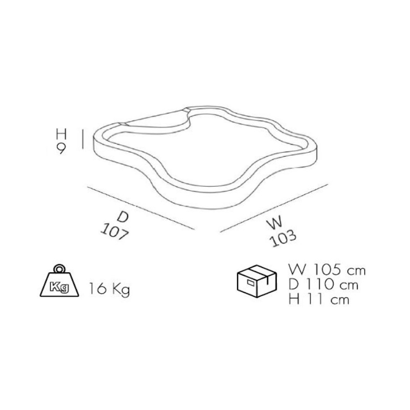 Realizzata in polietilene HD con superficie antiscivolo effetto pietra, scarico orizzontale che permette l’installazione senza foro nel terreno evitando modifiche strutturali; resistente ai raggi UV, sale e calcare.